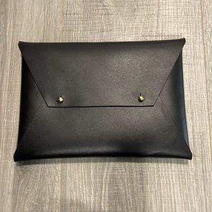 Black leather bag / clutch by tribe alive. New. Never used. Envelope style. โ๏ธ ๐ค The perfect little organizer for letters, cords or small gadgets. Double snap front closure. Did I say New? Yes!