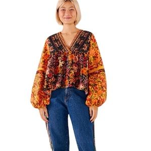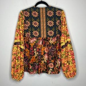 FARM Rio | Flower Gardens Puff Sleeve Peasant Boho Top Size Small