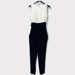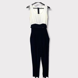 Vintage 90s Off White Black Sleeveless Belted Jumpsuit Medium