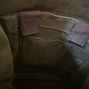 This is a beautiful backpack, in the most lovely, very rich, dark green. It has one exterior pocket on the front, that closes with a secure snap. The top foldsover and is secured with "lobster claw", brass mechanism. There are also two snaps at the top of the folder part, making it extremely secure. The interior has one open pocket, and a large compartment which will fit a 12" or smaller laptop, or pad. This type of leather will show marks, etc, which gives it a rustic look. Overall, a fabulous backpack.