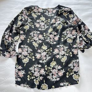 5/$25 Terra & Sky Sheer Button Down Long Sleeve Black Floral size 0X (14W)
