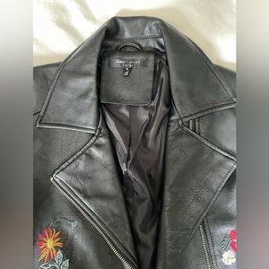 Romeo + Juliet Couture colorful flower embroidered fitted pleather jacket size medium, like new!