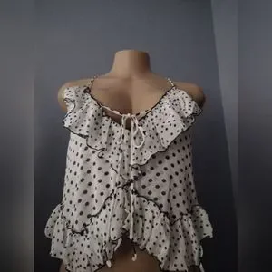 Free People Ivory with polka dots open back with bottoms tie front, spaghetti straps