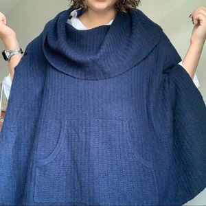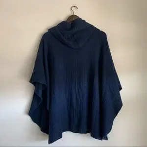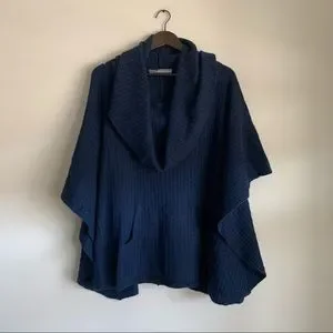 360Cashmere Heather Navy Cashmere Draped Poncho OS