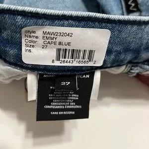 Amazing brand of jeans. Made in USA. Cool MA LOGO on pockets. Great stretch. Color is Cape Blue. Made from recycled materials. Anthropologie brand.