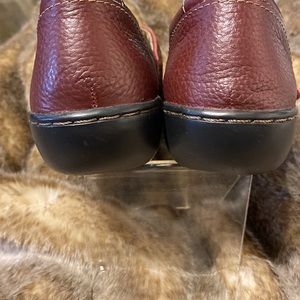 Never worn ( have too many shoes). Burgundy in color with cut work on the strap.