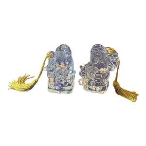 2 Gorham Lead Crystal Santa Ornaments 1 With Teddy Bear 3"