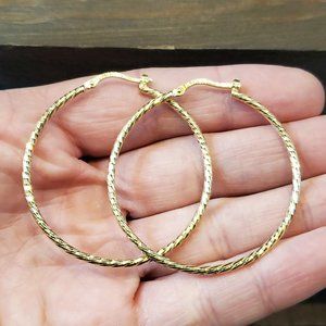 Gold Over 925 Sterling Silver Textured Pattern Large Hoop Earrings