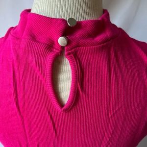 This original bebe top made in Turkey is giving me all the y2k vibes. The stones are swarovski crystals and all are in tact. This dark pink fuschia top is in pristine condition with zero flaws and is a size medium. It features a high neckline with a keyhole to give it a flirty flair. It also features a keyhole back closure with two buttons.
