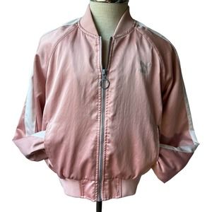 PUMA Pink and White Satin Bomber Jacket Size Small