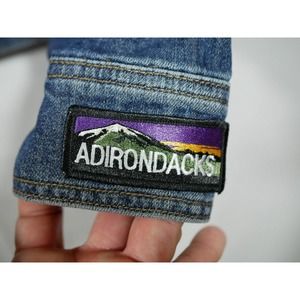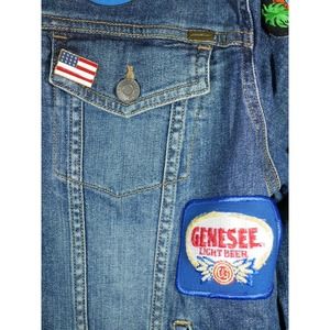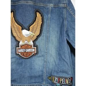 Eddie Bauer Denim Jean Jacket Patches Women XL Biker Bike Week Bands Beer