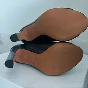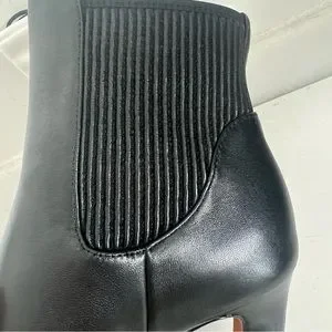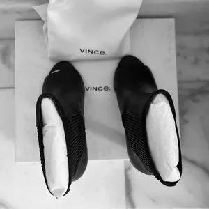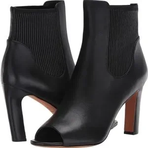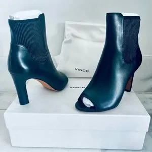 Vince Women’s Elsie Black Leather Peep Toe Ankle Booties Pumps Heel Stretch 5.5