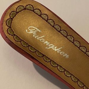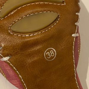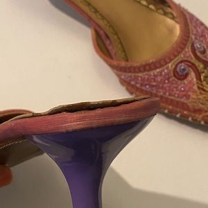 Vintage never worn dreamy Jeannie pointy toe kitten heel slides. Pink with metallic embroidery, leather, silk and man made purple heel. Size 8 and fits true to size.