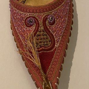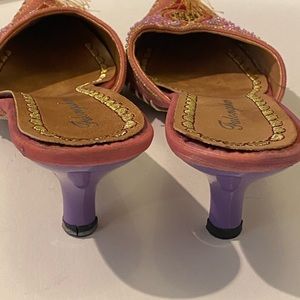 I Dream of Jeannie pink & purple beaded embroidered slide mules sz 8 kitten heel