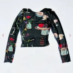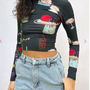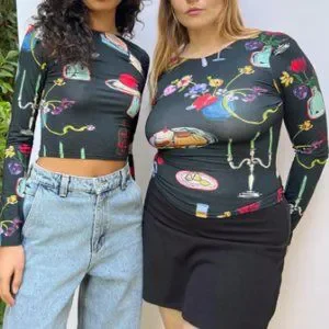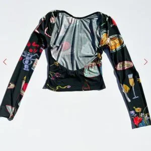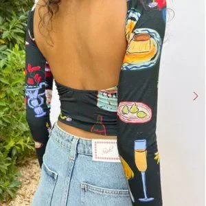 Gah! The Rowan is our newest closet staple. A fitted cotton long sleeve tee with a cropped body and the a sleek back cut out. The Rowan features the delicious Set the Table print, with all of our dinner party favorites!