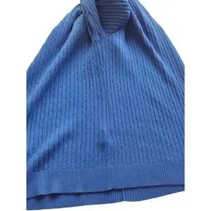 Made from a blend of cotton and acrylic, the sweater is machine washable and easy to care for. It's available in size L and has a regular fit. The blue color, button accents, and long sleeves make it fashionable yet practical. The sweater is perfect for women who want to stay comfortable while looking stylish.