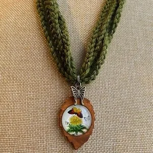 • Nature inspired jewelry, boho necklace, crochet necklace, handmade jewelry, butterfly pendant