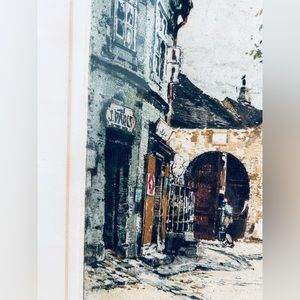 The art by itself is flawless. The etching is colorful (No color loss). However, the frame is very old and has all over scratches and bumps. Please review all pictures carefully. Frame sign of use.