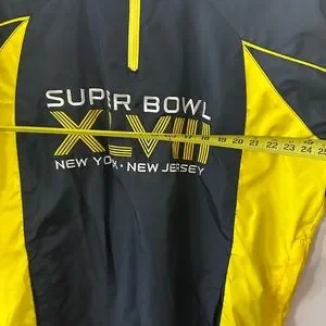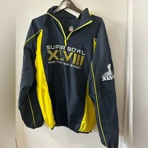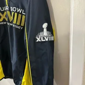 NFL Superbowl XLVIII Windbreaker Pullover 1/4 Zip Navy Yellow Pockets Lined Sz L
