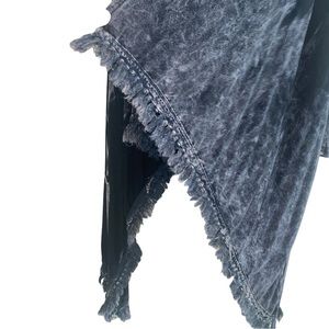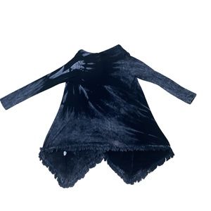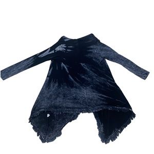 American Age Open Front Boho Fringe Acid Wash Black Tie Dye Cardigan Sz Small