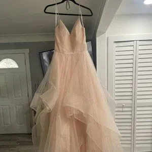 Terani Champagne Long ball gown. Sleeveless Spaghetti straps sweetheart bodice with trimmed glitter tulle. New with tags available in plastic garment bag Size .