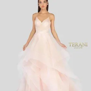 Terani Couture Ruffle Glittery Tulle Ball Gown
