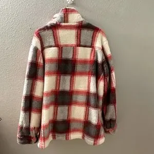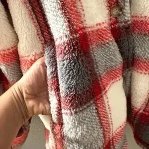 PJ Salvage Women's Plaid Faux Fur Long Sleeve Cozy plaid jacket/ sweaterS/M