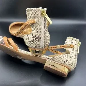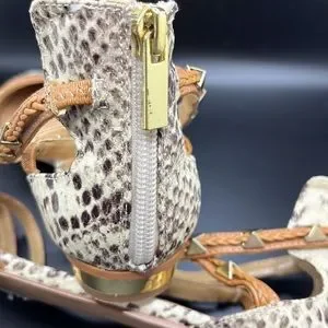 Excellent condition. Genuine leather studded flats. Zip back with gold studded heals. Closed toe. Snakeskin pattern with leather accents. Size 6.5.