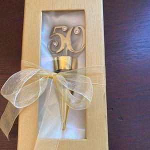 New 50th Anniversary Wine Bottle Stopper Embellished w/ 3 Rhinestones. Condition is New. Lovely gift for that couple celebrating their 59th wedding anniversary - just add their favorite bottle of wine. Stopper is 4” long. It is boxed with a pretty ribbon and bow.