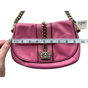 Wilsons Leather Pink Leather Bag Shoulder or Clutch Gold Chain Rhinestone Crown