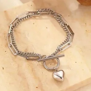 Silver Tone Heart Paperclip Chain Stainless Steel Bracelet