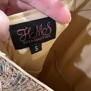 Omg! This dress is amazing! Super shiny gold sequins with fringe at the bottom make this dress a total knockout. Size small from hms. New price around $100 and this one was worn only for about an hour. Excellent condition!