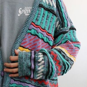 Coogie Style 80s Pop Art Color Knit Sweater Large