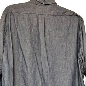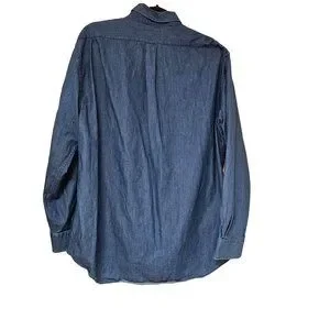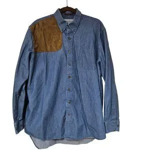 This Chesapeake Bay Outfitters men's shirt is a stylish and comfortable choice. It's XL in size, has a blue jean denim color with a unique brown suede patch, and is made from 100% cotton for maximum comfort and durability.