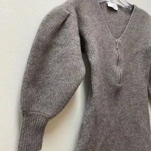 Elevate your maternity wardrobe with this stylish, bump-friendly sweater-dress with dropped shoulders and an exposed zipper at the V-neck for discreet nursing.