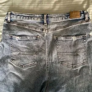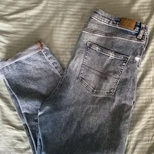 Slightly distressed light-wash mom jeans from American Eagle size 16.