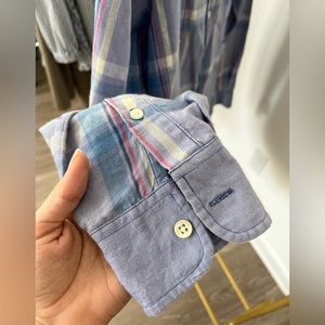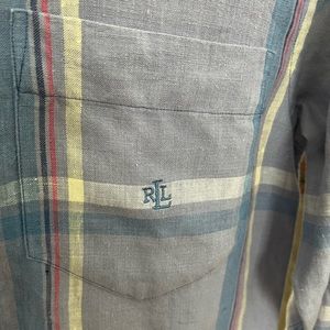 Lauren Ralph Lauren 100% Linen Plaid Purple Blue Button Down Top Small