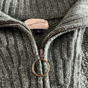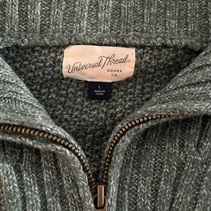 Excellent used condition size large Universal Thread sweater. Teal color with collar and brass color metal zipper pull details.