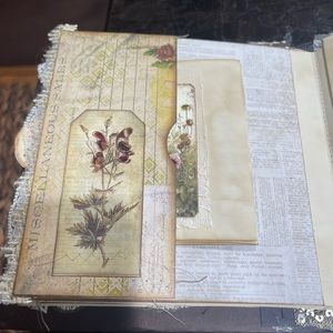 Junk journal comes with book mark, ephemera, lace, embellishments. Pockets and tuck places. Lots of pages to write on. Comes with 40 pages. Made with chip board and heavy card stock. Hard covers, pages are sewn onto spine. Very durable. Perfect for gifting!!! Measures 6 1/2 x 6 1/2 BEAUTIFUL!!!!