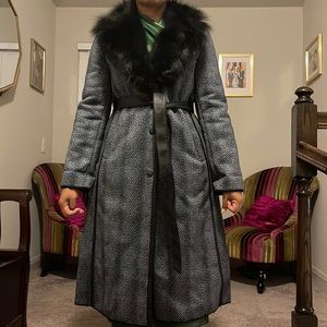 New without tags Multi faux fur / micro suede midi winter coat with snaps and belt.