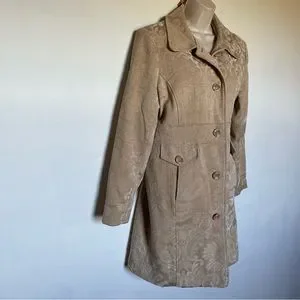 Gorgeous neutral colored tan beige tapestry coat. 90s y2k. Originally had a fur collar (you can add one yourself as the buttons are still attached to the inner collar!)