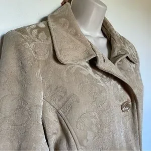 Tan brocade tapestry jacket with front pockets, and gorgeous fit.