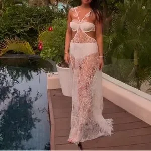 ethereal For Love and Lemons Mackenzie White Lace Maxi Dress! We love the handcrafted butterfly embellishments. The Bust is lined and comes with high-waisted satin briefs. Be ready to Twirl!