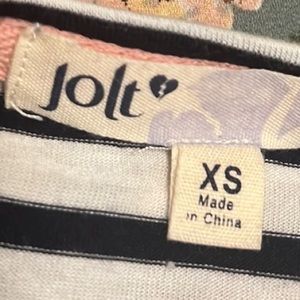 Jolt, Rolled Sleeves, Floral Print,Striped Print Top, Multi Colors, Size XS