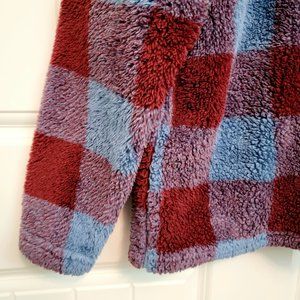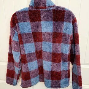 EDDIE BAUER Women's Large Ultra Soft Plush Fleece 1/4 Zip Pullover Harbor Check