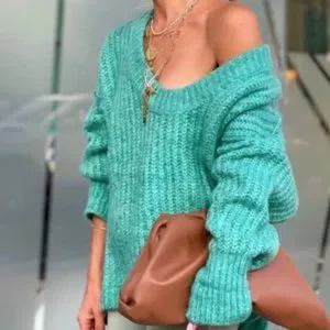 NWT FREE PEOPLE blue bell v neck oversized sweater in electric teal size large