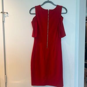 Michael Kors Stretch-Viscose Peekaboo Midi Dress in Crimson. Size S