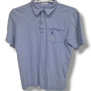 Johnnie O Polo Men Size 14 Blue And White Striped 100% Cotton