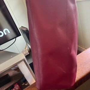 In used condition with signs of wear in one of the straps especially, as shown in the photo. Shaping needs a little adjustment because I haven’t used it for a while. In dark red or maroon color.