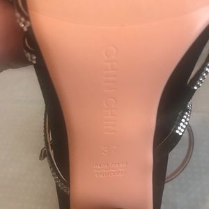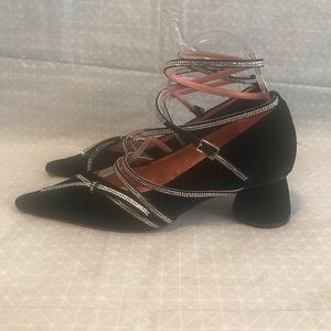 ChinChin Black Velvet Rhinestone Strap Wrapped Heels 37